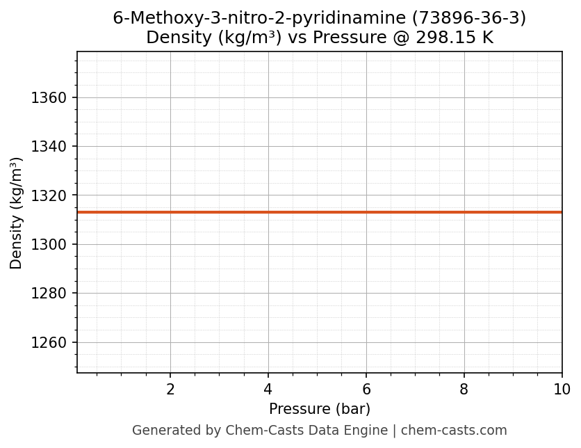 This page presents the pressure-dependent thermodynamic and transport properties of 6-Methoxy-3-nitro-2-pyridinamine (CAS 73896-36-3) calculated at a constant temperature of 298 K (25 °C) over the pressure range 0.10-10 bar.