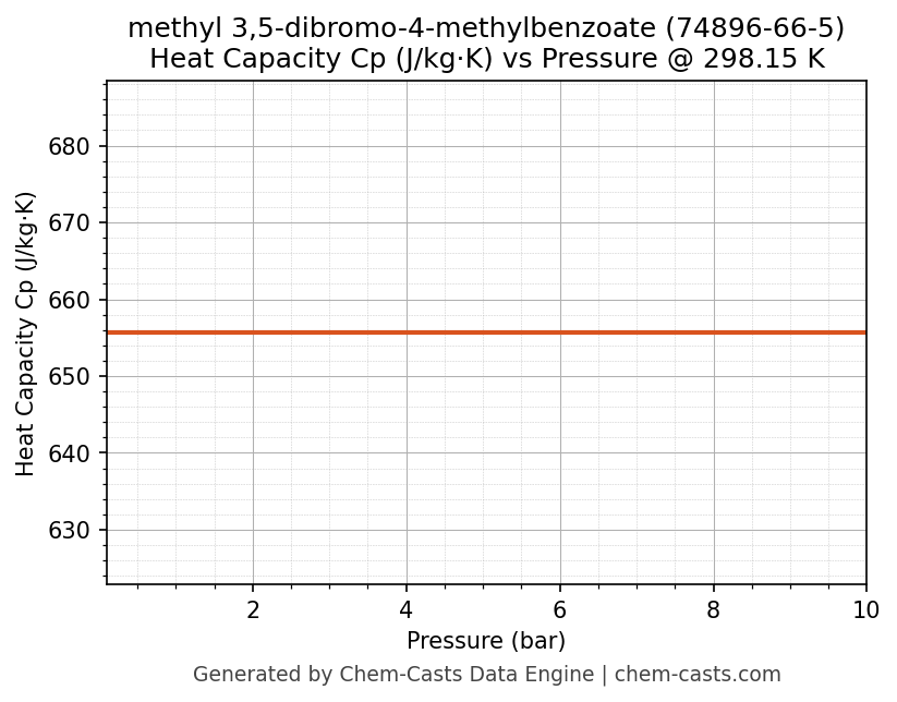 This page presents the pressure-dependent thermodynamic and transport properties of methyl 3,5-dibromo-4-methylbenzoate (CAS 74896-66-5) calculated at a constant temperature of 298 K (25 °C) over the pressure range 0.10-10 bar.