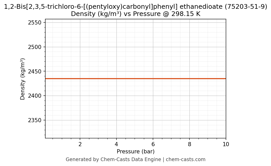 This page presents the pressure-dependent thermodynamic and transport properties of 1,2-Bis[2,3,5-trichloro-6-[(pentyloxy)carbonyl]phenyl] ethanedioate (CAS 75203-51-9) calculated at a constant temperature of 298 K (25 °C) over the pressure range 0.10-10 bar.