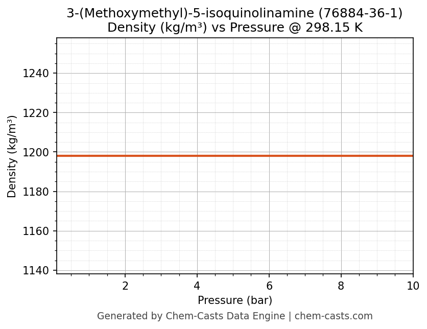 This page presents the pressure-dependent thermodynamic and transport properties of 3-(Methoxymethyl)-5-isoquinolinamine (CAS 76884-36-1) calculated at a constant temperature of 298 K (25 °C) over the pressure range 0.10-10 bar.