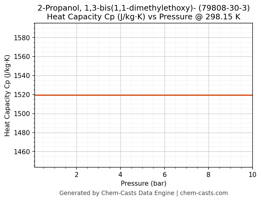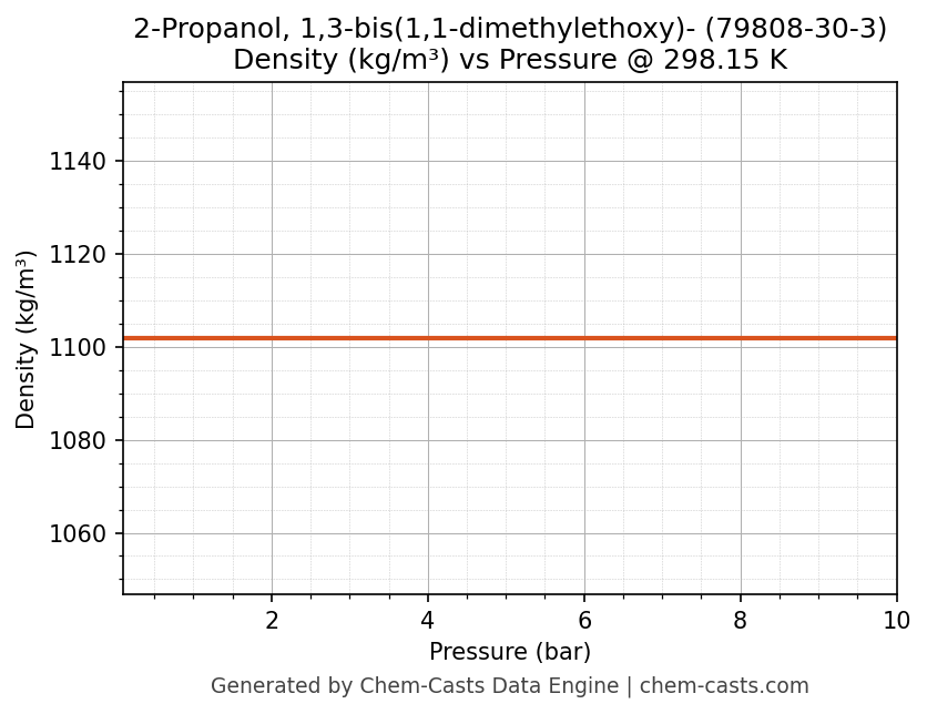 This page presents the pressure-dependent thermodynamic and transport properties of 2-Propanol, 1,3-bis(1,1-dimethylethoxy)- (CAS 79808-30-3) calculated at a constant temperature of 298 K (25 °C) over the pressure range 0.10-10 bar.