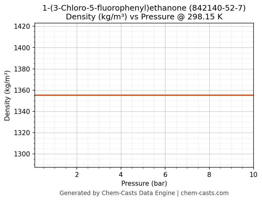 This page presents the pressure-dependent thermodynamic and transport properties of 1-(3-Chloro-5-fluorophenyl)ethanone (CAS 842140-52-7) calculated at a constant temperature of 298 K (25 °C) over the pressure range 0.10-10 bar.