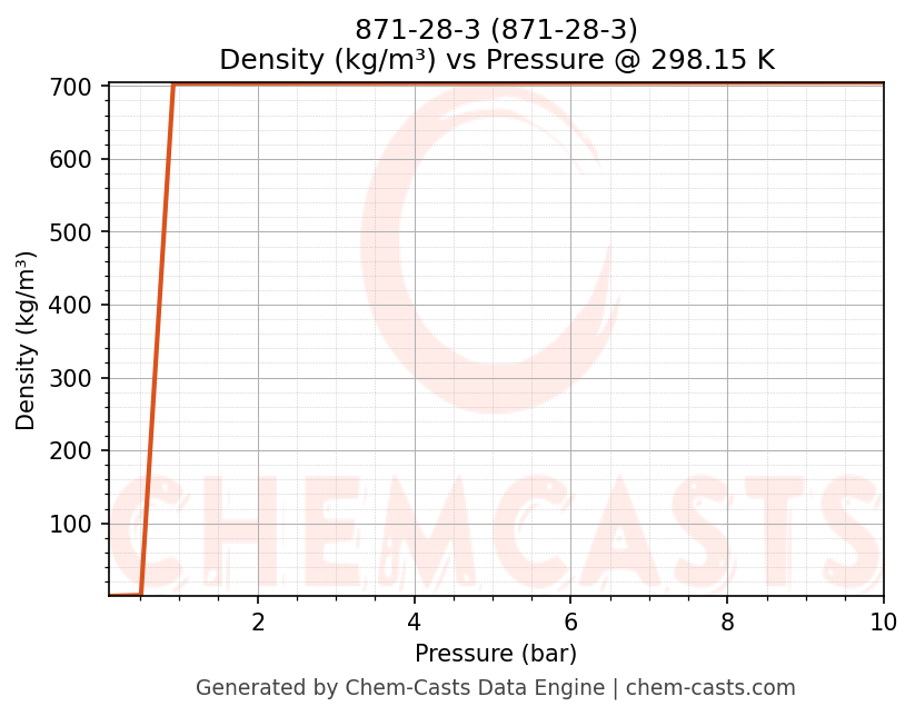 This page presents the pressure-dependent thermodynamic and transport properties of 871-28-3 (CAS 871-28-3) calculated at a constant temperature of 298 K (25 °C) over the pressure range 0.10-10 bar.