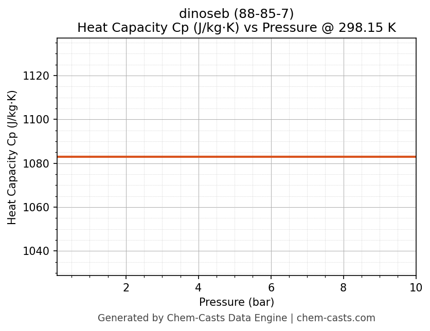 This page presents the pressure-dependent thermodynamic and transport properties of dinoseb (CAS 88-85-7) calculated at a constant temperature of 298 K (25 °C) over the pressure range 0.10-10 bar.