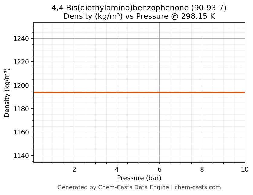 This page presents the pressure-dependent thermodynamic and transport properties of 4,4-Bis(diethylamino)benzophenone (CAS 90-93-7) calculated at a constant temperature of 298 K (25 °C) over the pressure range 0.10-10 bar.
