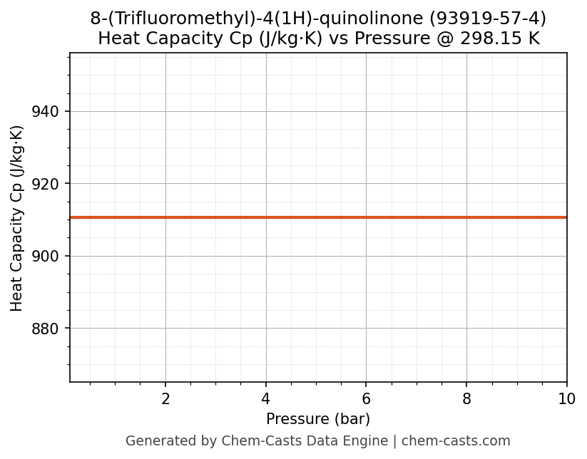 This page presents the pressure-dependent thermodynamic and transport properties of 8-(Trifluoromethyl)-4(1H)-quinolinone (CAS 93919-57-4) calculated at a constant temperature of 298 K (25 °C) over the pressure range 0.10-10 bar.