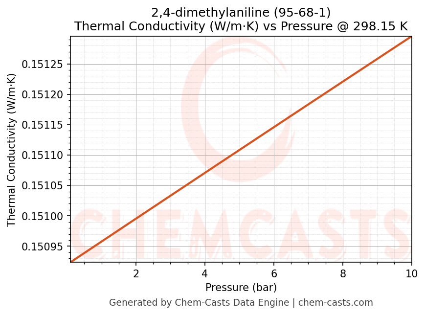 This page presents the pressure-dependent thermodynamic and transport properties of 2,4-dimethylaniline (CAS 95-68-1) calculated at a constant temperature of 298 K (25 °C) over the pressure range 0.10-10 bar.