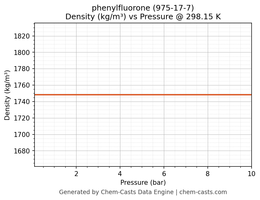 This page presents the pressure-dependent thermodynamic and transport properties of phenylfluorone (CAS 975-17-7) calculated at a constant temperature of 298 K (25 °C) over the pressure range 0.10-10 bar.
