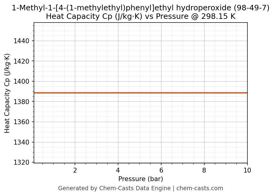 ![Heat Capacity (Cp) vs Pressure chart for 1-Methyl-1-[4-(1-methylethyl)phenyl]ethyl hydroperoxide (CAS 98-49-7)](https://chemcasts-prod.s3.ap-south-1.amazonaws.com/chem_plots_tconst/98-49-7-cp-tconst.png)