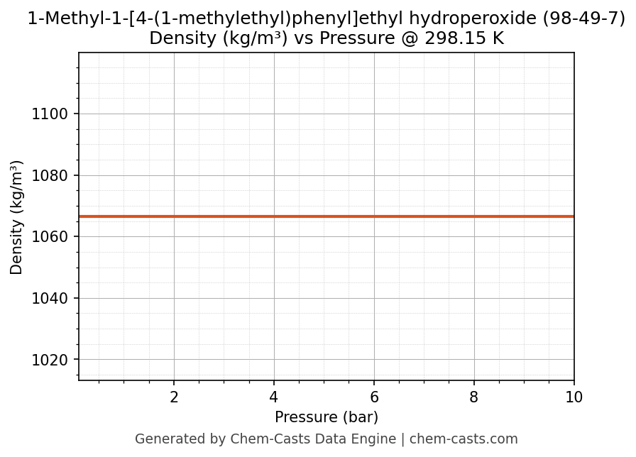 ![Density vs Pressure chart for 1-Methyl-1-[4-(1-methylethyl)phenyl]ethyl hydroperoxide (CAS 98-49-7)](https://chemcasts-prod.s3.ap-south-1.amazonaws.com/chem_plots_tconst/98-49-7-density-tconst.png)